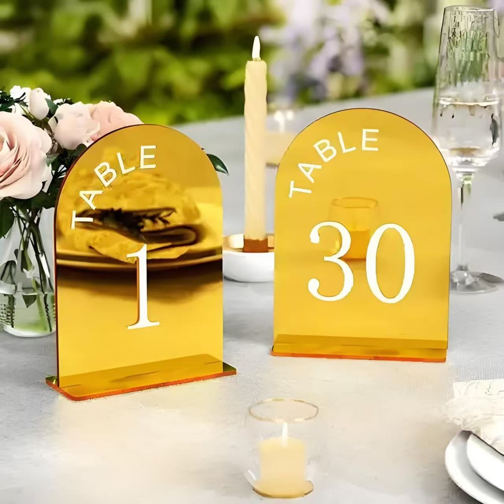 Folhas de acrílico espelhado dourado podem ser usadas para criar letras/logotipos de alta qualidade, produzindo letras tridimensionais e logotipos de marcas por meio de entalhe ou corte. Folhas acrílicas espelhadas douradas podem ser usadas para criar sistemas de sinalização/orientação para hotéis, clubes, prédios de escritórios e outros locais semelhantes.